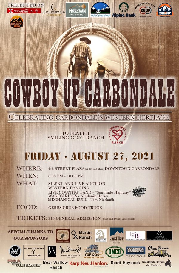 Cowboy Up Carbondale's purpose has been focused on ensuring the endurance and experience of our western heritage, supporting our community programs that enrich the lives our residents and guests with a quality of life that we all deserve, and our valley's resources.
